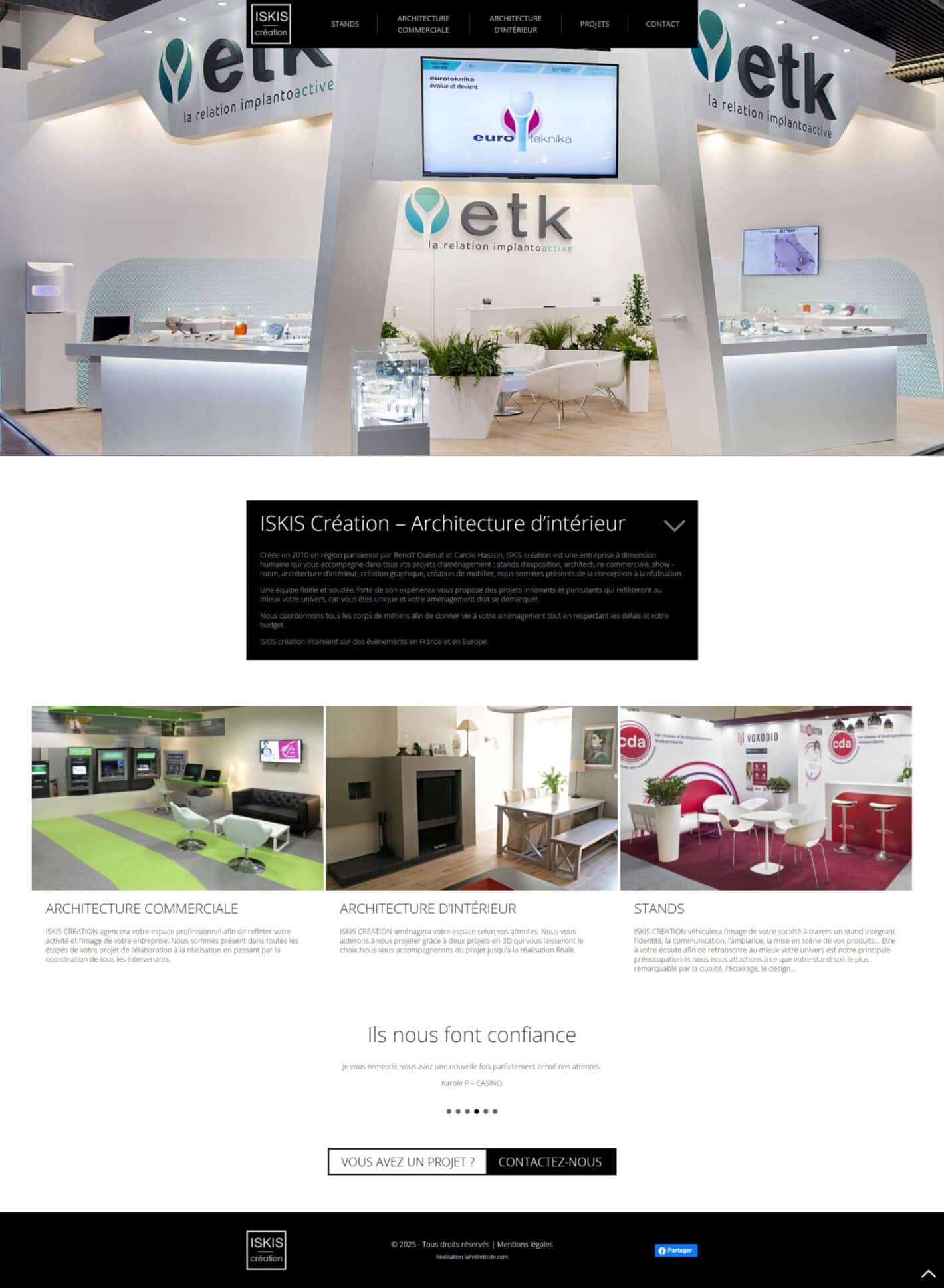 Créer un site élégant et immersif pour mettre en valeur le travail d’Iskis Création, architecte d’intérieur. L’objectif était de valoriser les réalisations à travers une large place accordée aux visuels, tout en reflétant l’univers esthétique et la sensibilité du cabinet.