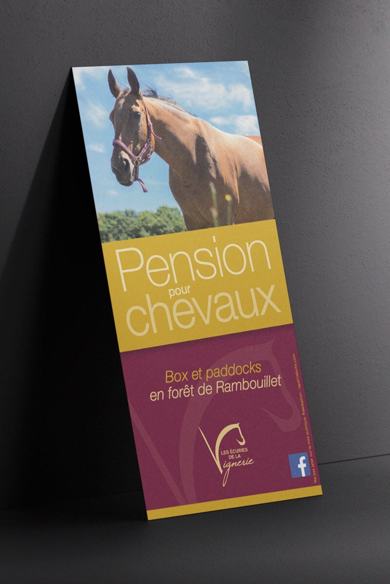 Promouvoir les services de pension pour chevaux du centre équestre à travers un flyer épuré et professionnel. L’objectif est de faire connaître l’établissement et ses prestations. Le design reprend les codes couleur et l’image de marque tout en restant sobre.