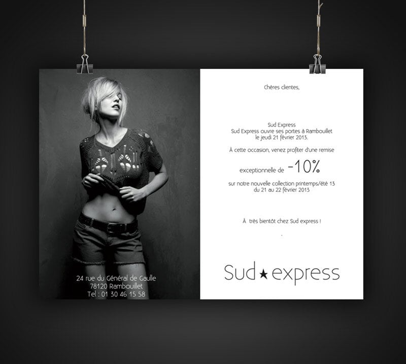 Concevoir et imprimer une affiche attractive pour annoncer l’ouverture de la boutique de prêt-à-porter, tout en mettant en avant la promotion spéciale d’ouverture destinée à générer du trafic dès les premiers jours. L’objectif était de capter l’attention des passants grâce à un visuel représentatif de l’univers de la marque avec une mise en page claire.